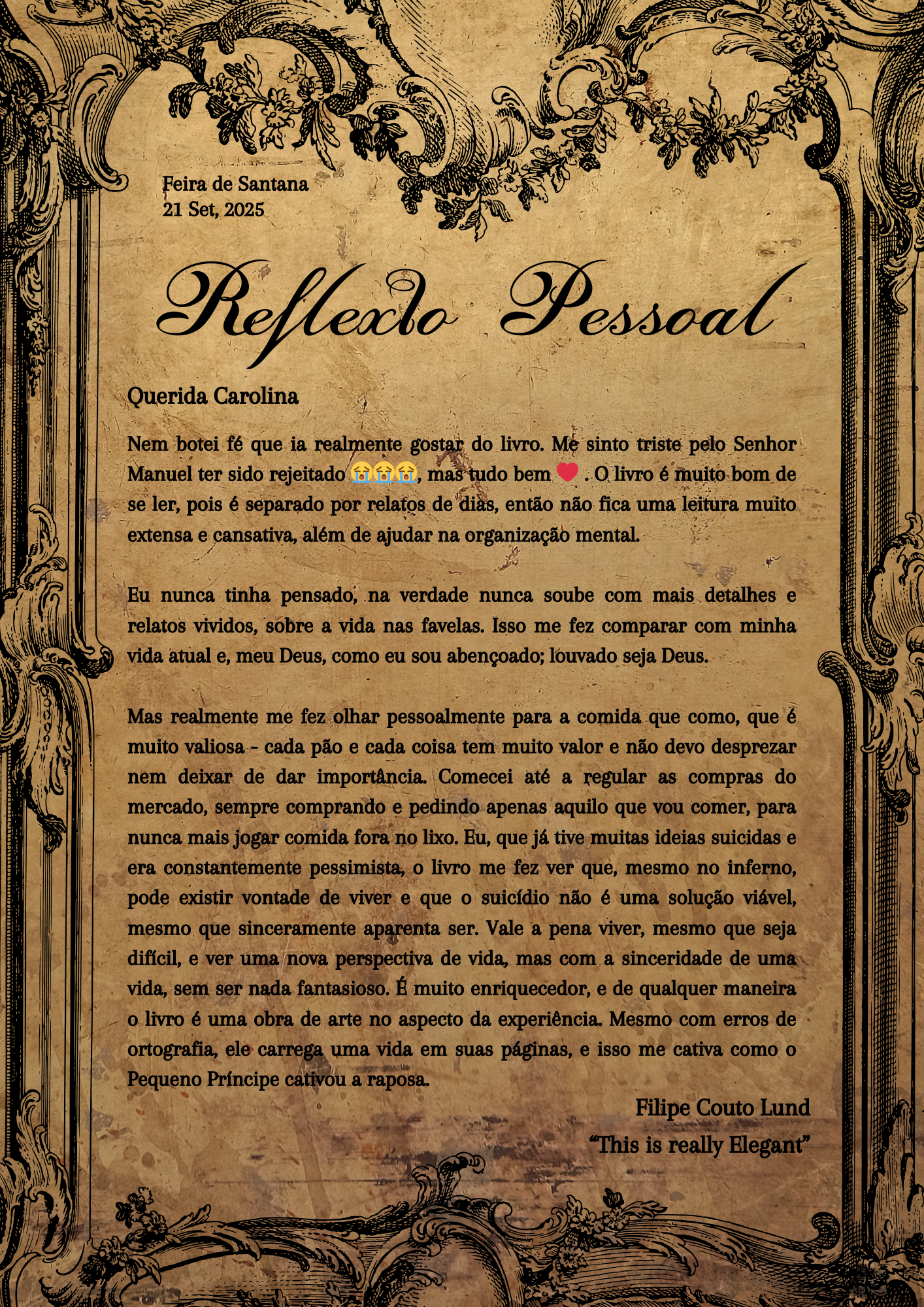 A My Lady, ou Lady dos miseráveis, espero que isso não seja interpretado como algo ofensivo; eram meus elogios a essa guerreira. Bem, ela nasceu em 1914, lá em uma pequena cidade de Minas Gerais. Ela teve uma infância difícil, imagina uma criança pobre em uma cidade do interior. Ela teve poucas oportunidades e, principalmente, de estudar, mas mesmo assim era uma menina muito curiosa e determinada, mesmo sempre vivendo perto de sofrimento e luta pra viver.